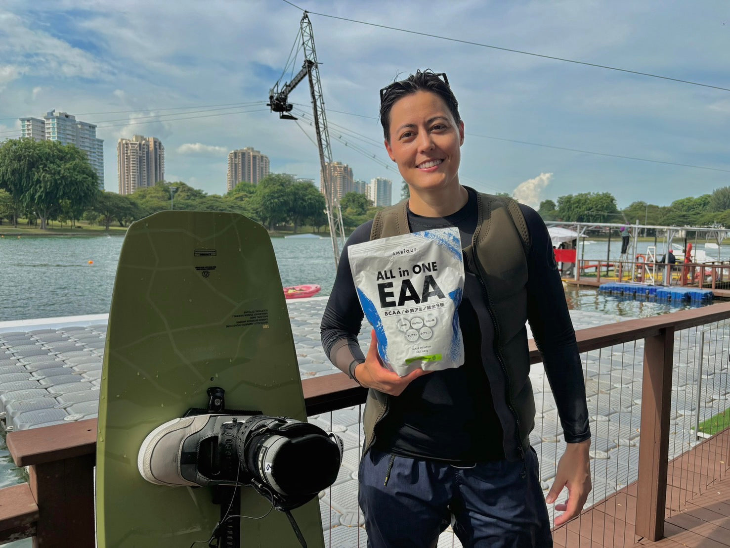 I take Ambique EAA when I wakeboard, workout at gym, cycle… pretty much anytime I move. I love the subtle taste and the sweetness is just right. It comes with creatine and glutamine which I used to take separately but now I can just take this, makes things easier!